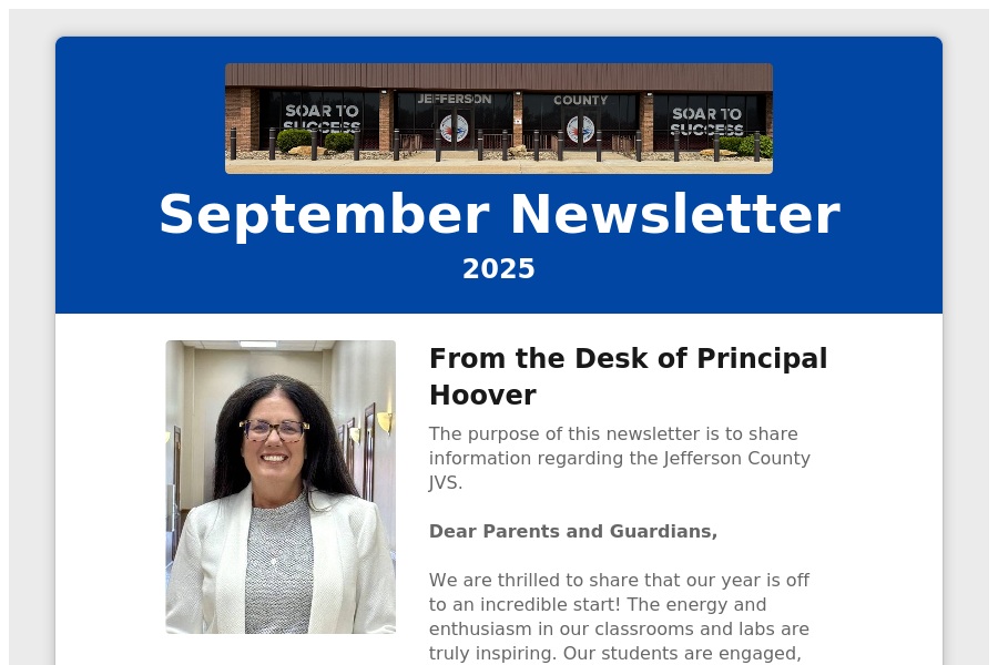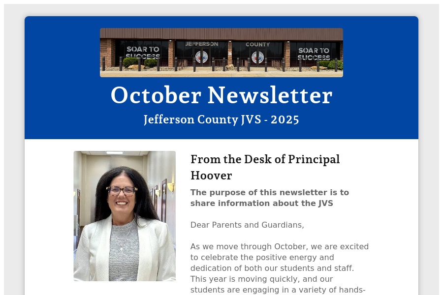 At Jefferson County Vocational School, our mission is to empower students to make informed career decisions and equip them with the occupational, academic, and employability skills necessary for success. We are dedicated to ensuring our graduates are not only ready for appropriate job placement but also possess the foundational skills to advance confidently in their chosen careers.